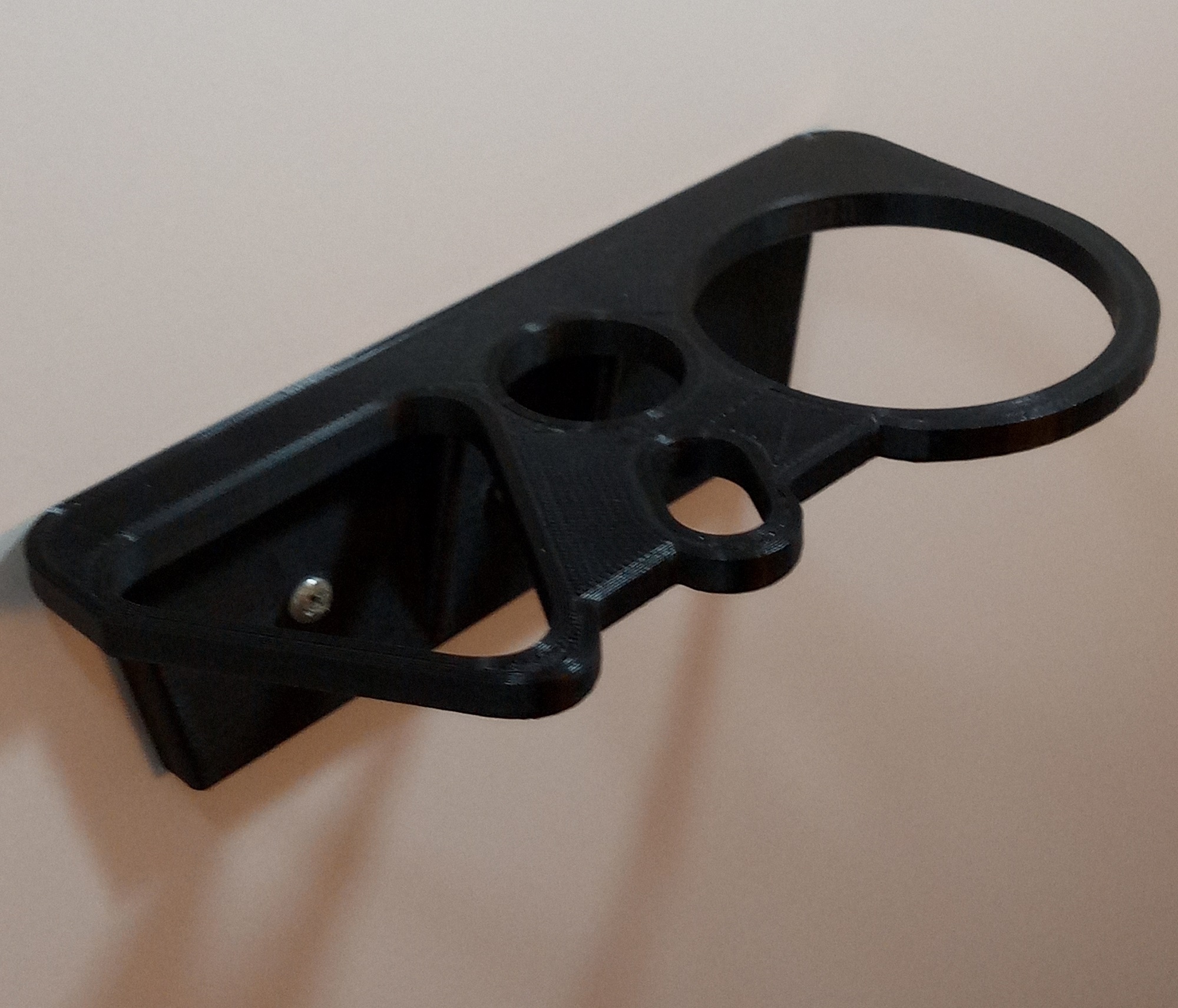 4 device holes fit standard blow driers, hairbrushes, toothbrushes, razors, scissors, or clippers.